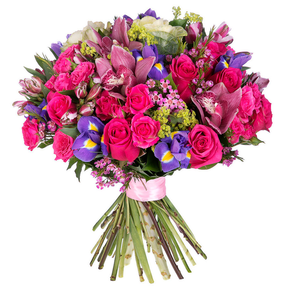 Роза одноголовая, ирис, альстромерия, орхидея, статица, роза кустовая, ахиллея.