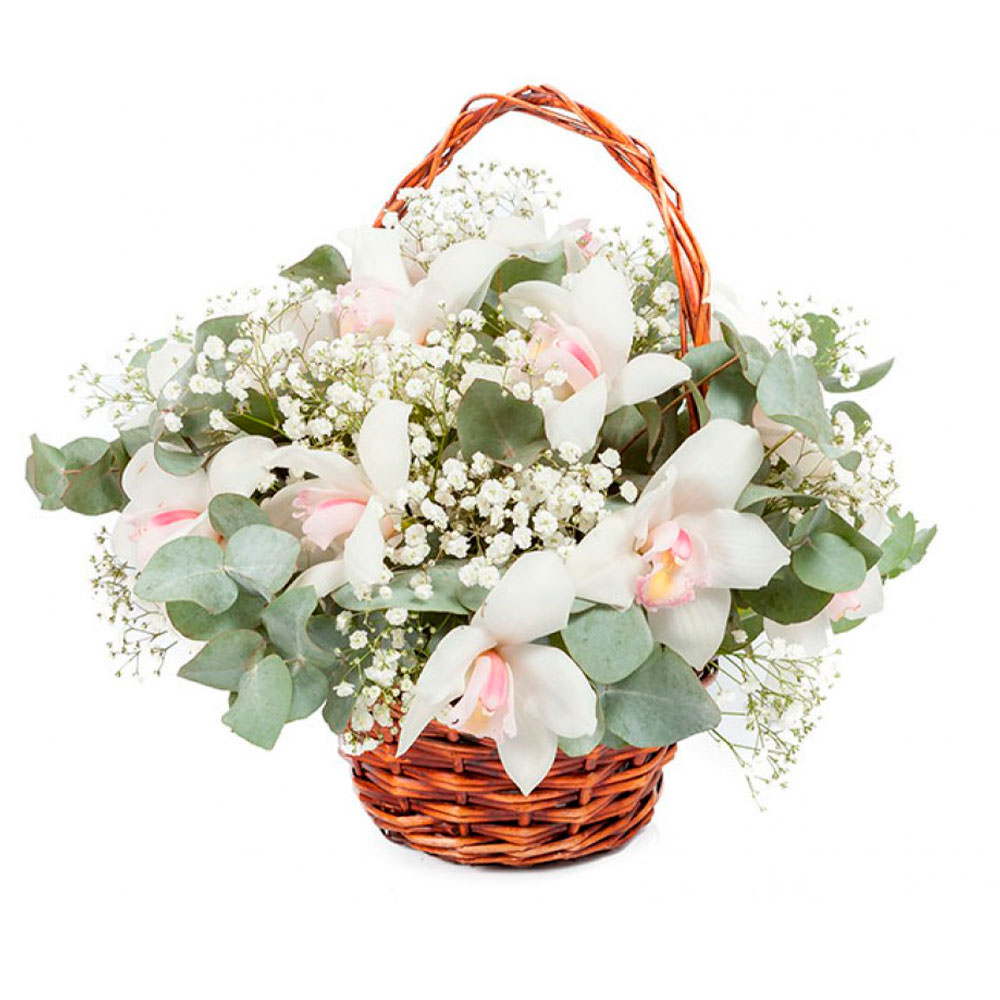Орхидея, эвкалипт, гипсофила.