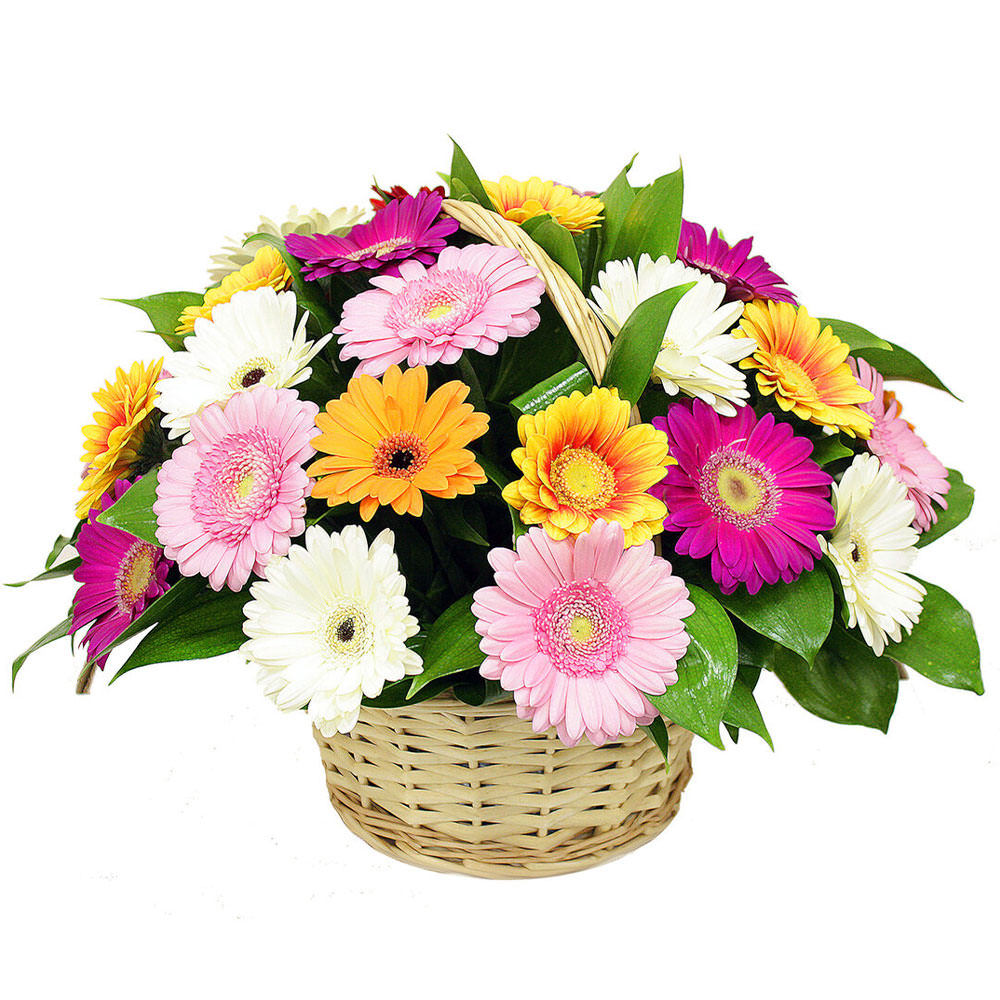 Герберы микс, зелень.